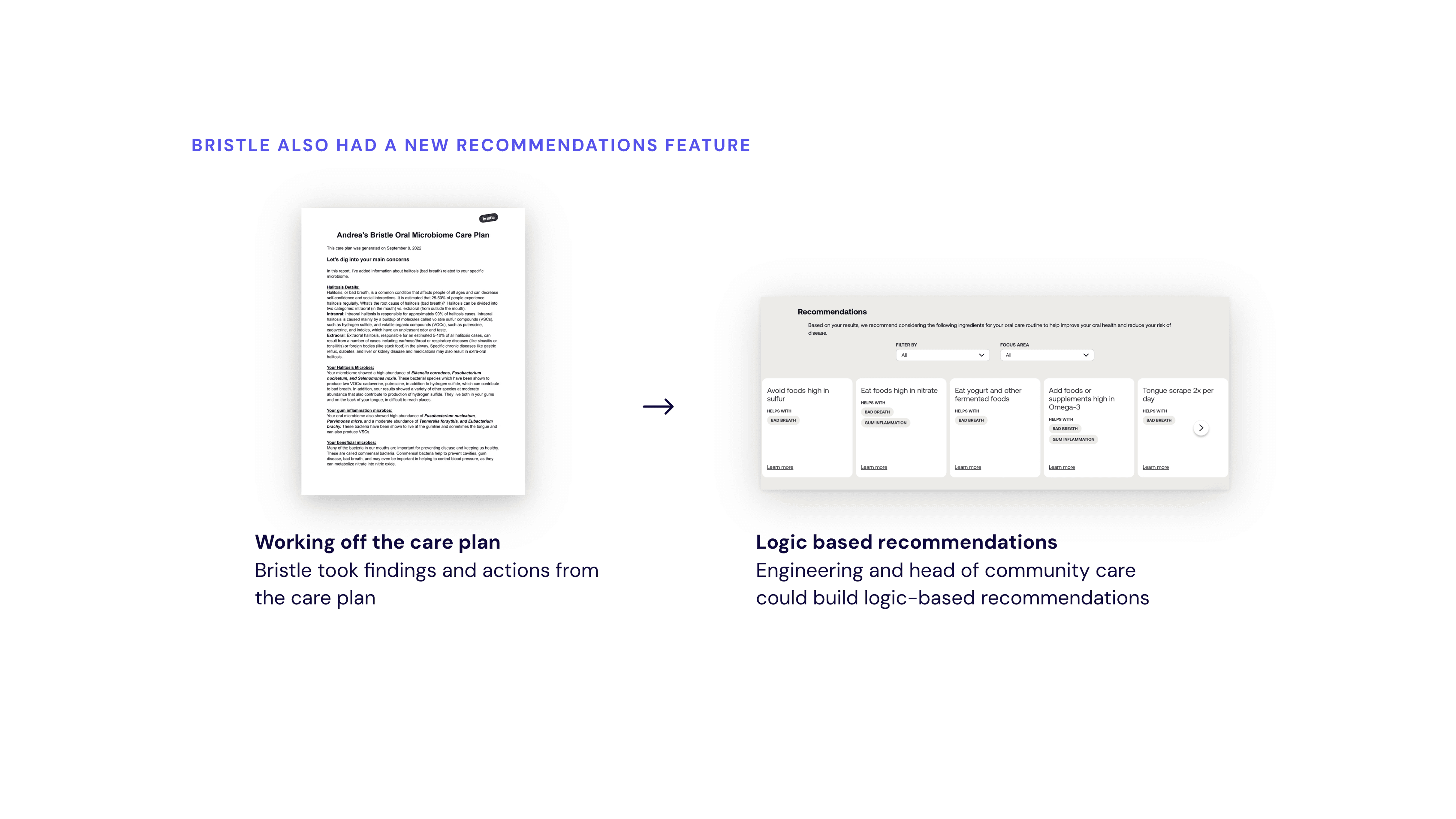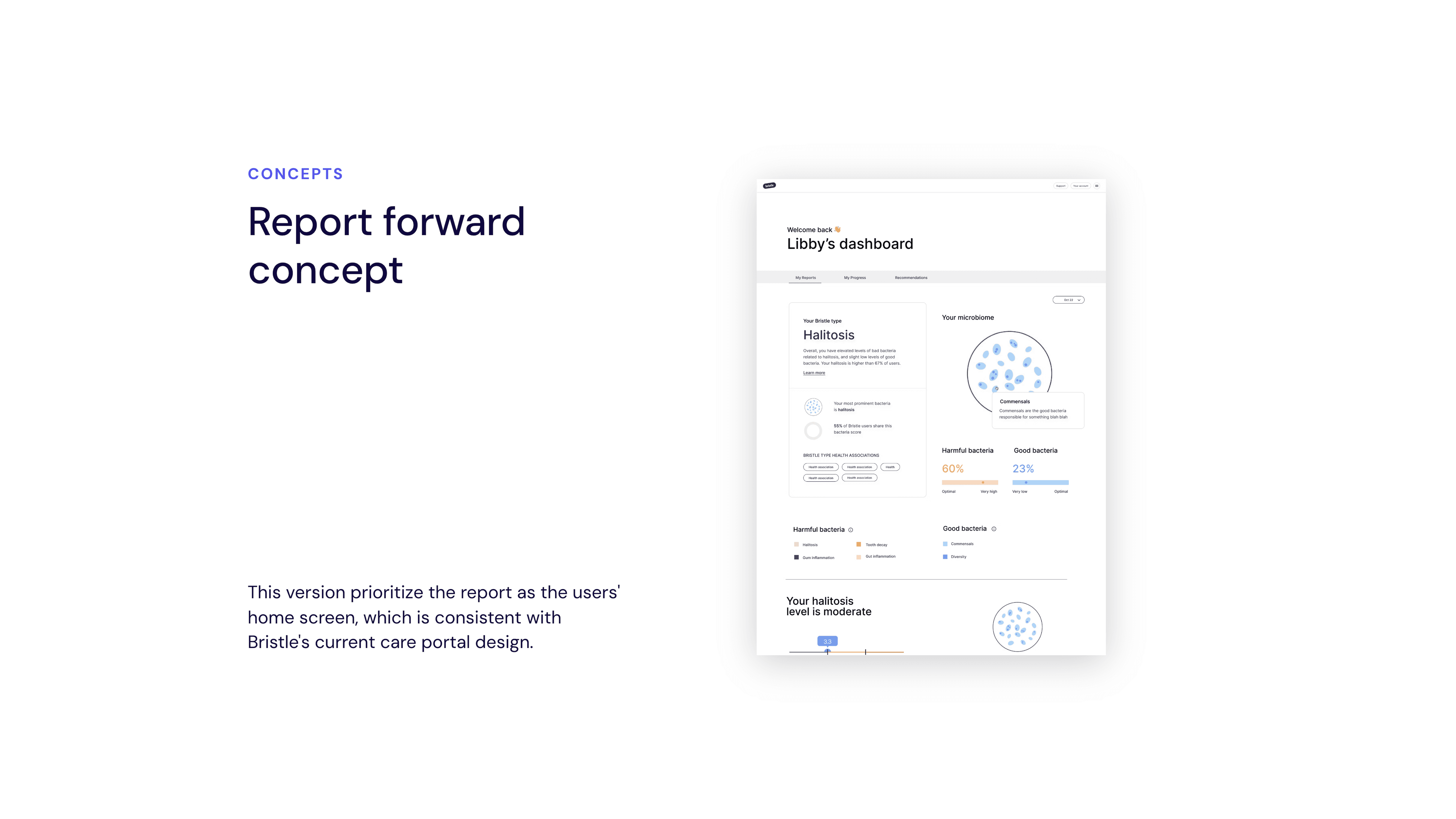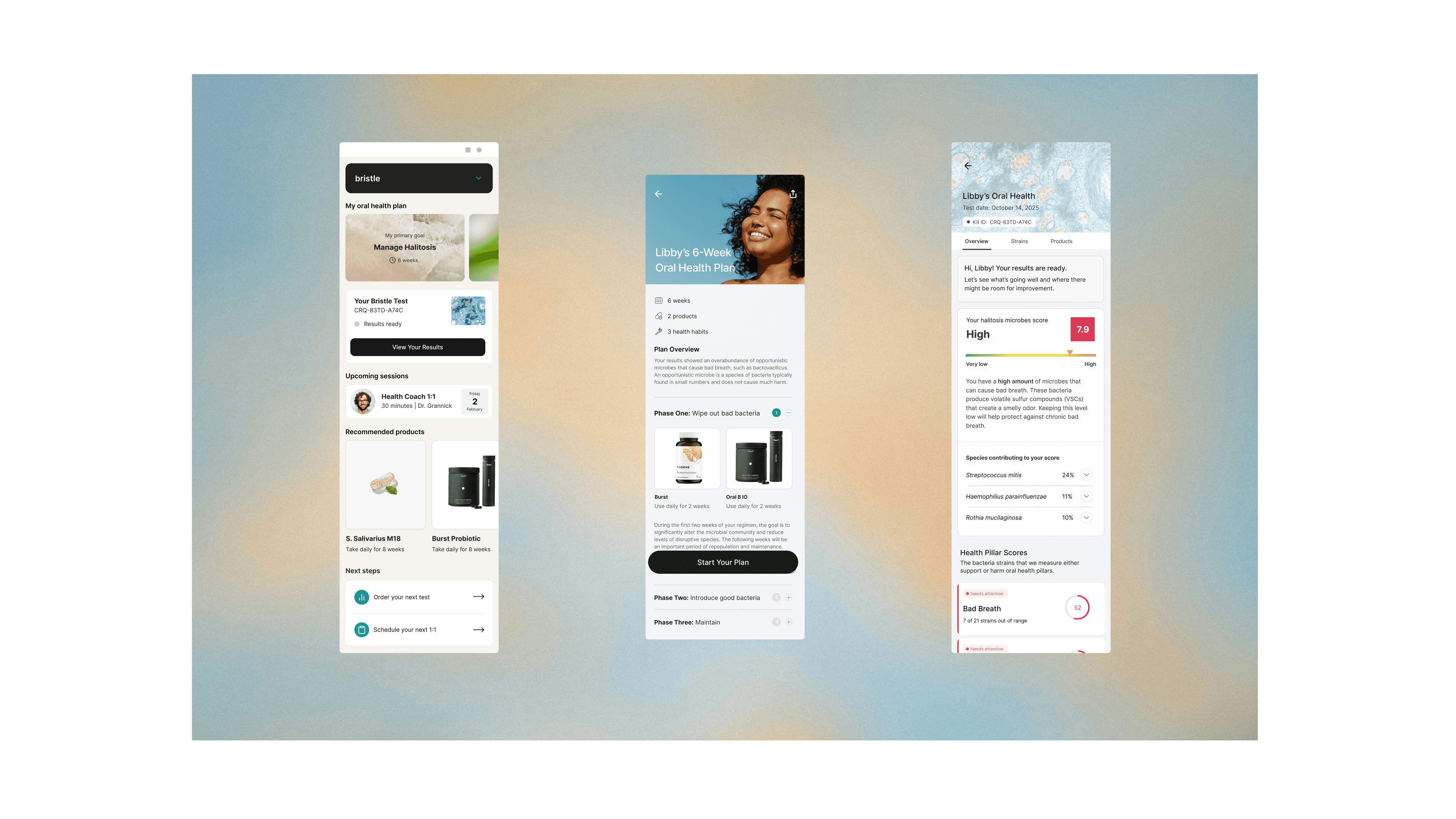I partnered with Bristle, a Y Combinator–backed health tech startup offering at-home oral microbiome testing, as the lead designer to redesign their results report and translate complex microbiome data into a clear, actionable plan users could actually follow.