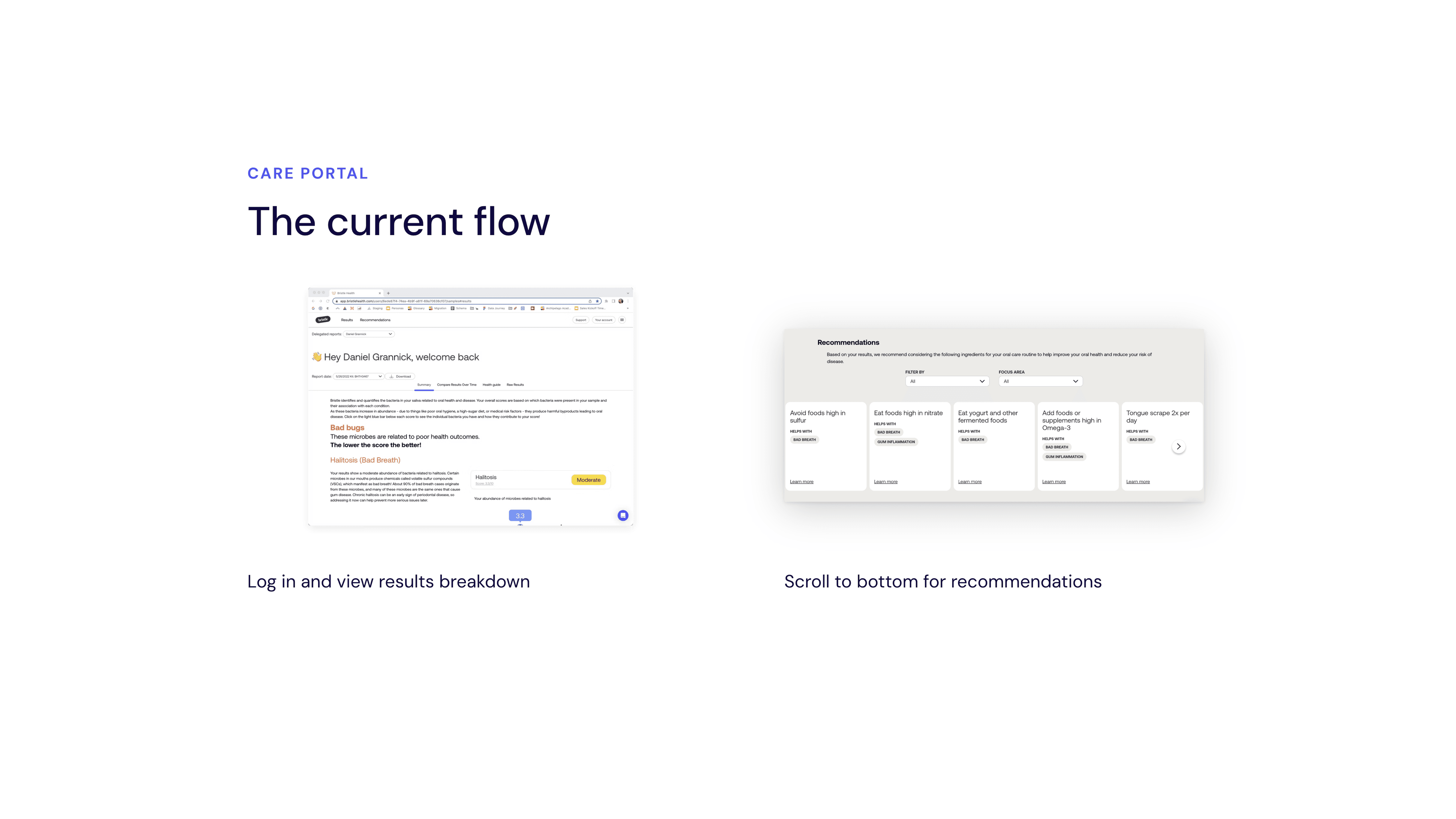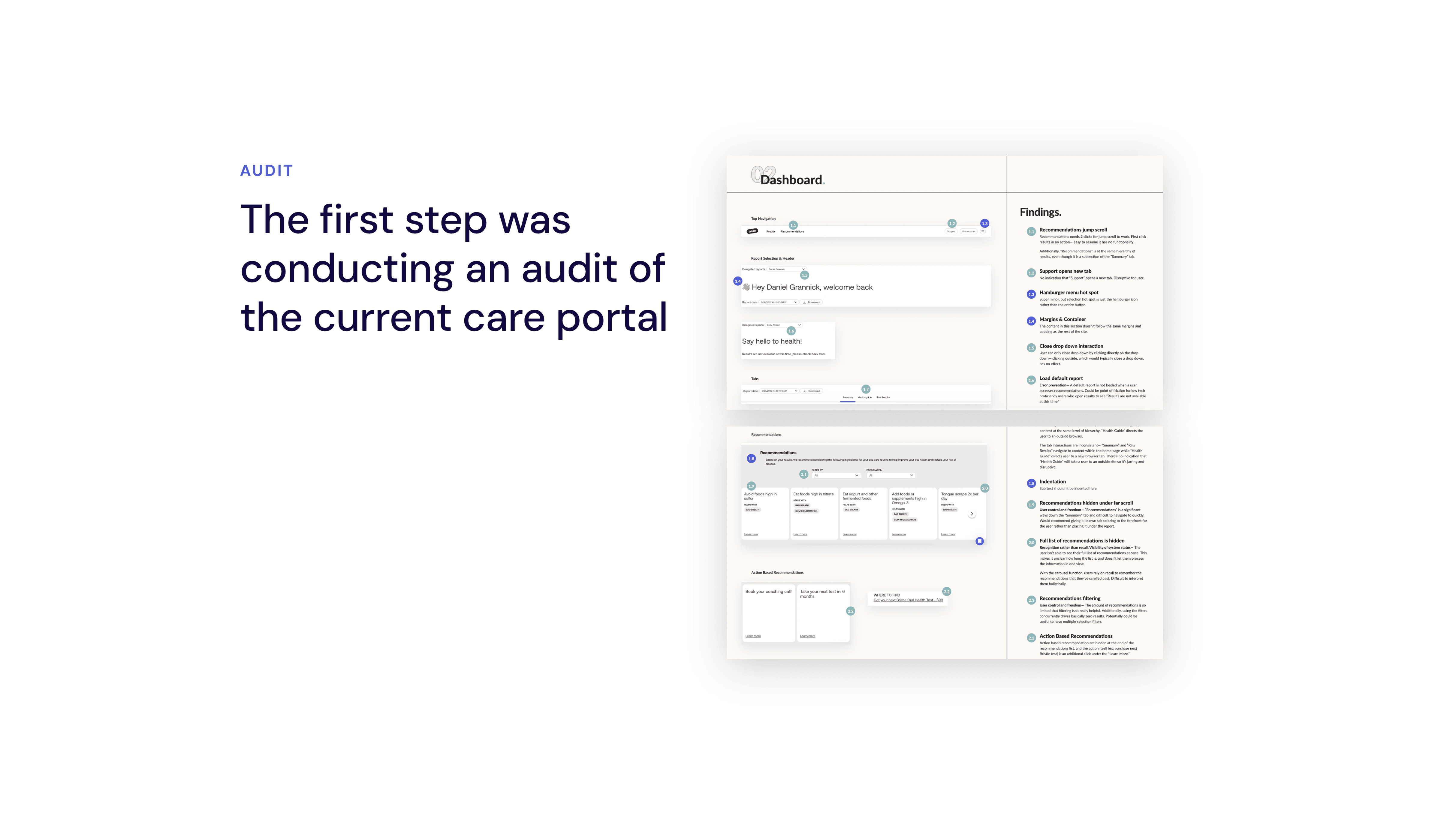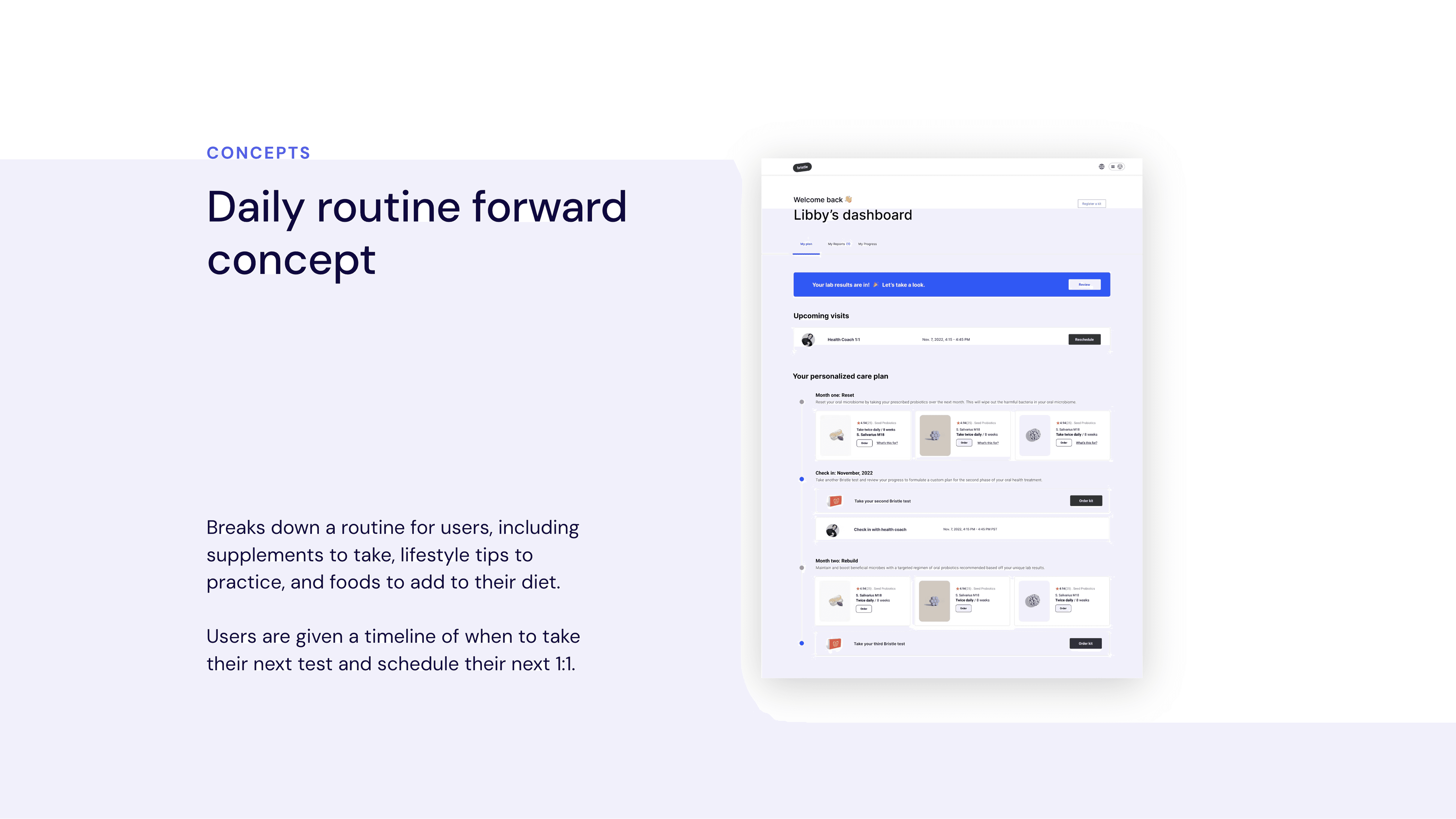 I partnered with Bristle, a Y Combinator–backed health tech startup offering at-home oral microbiome testing, as the lead designer to redesign their results report and translate complex microbiome data into a clear, actionable plan users could actually follow.