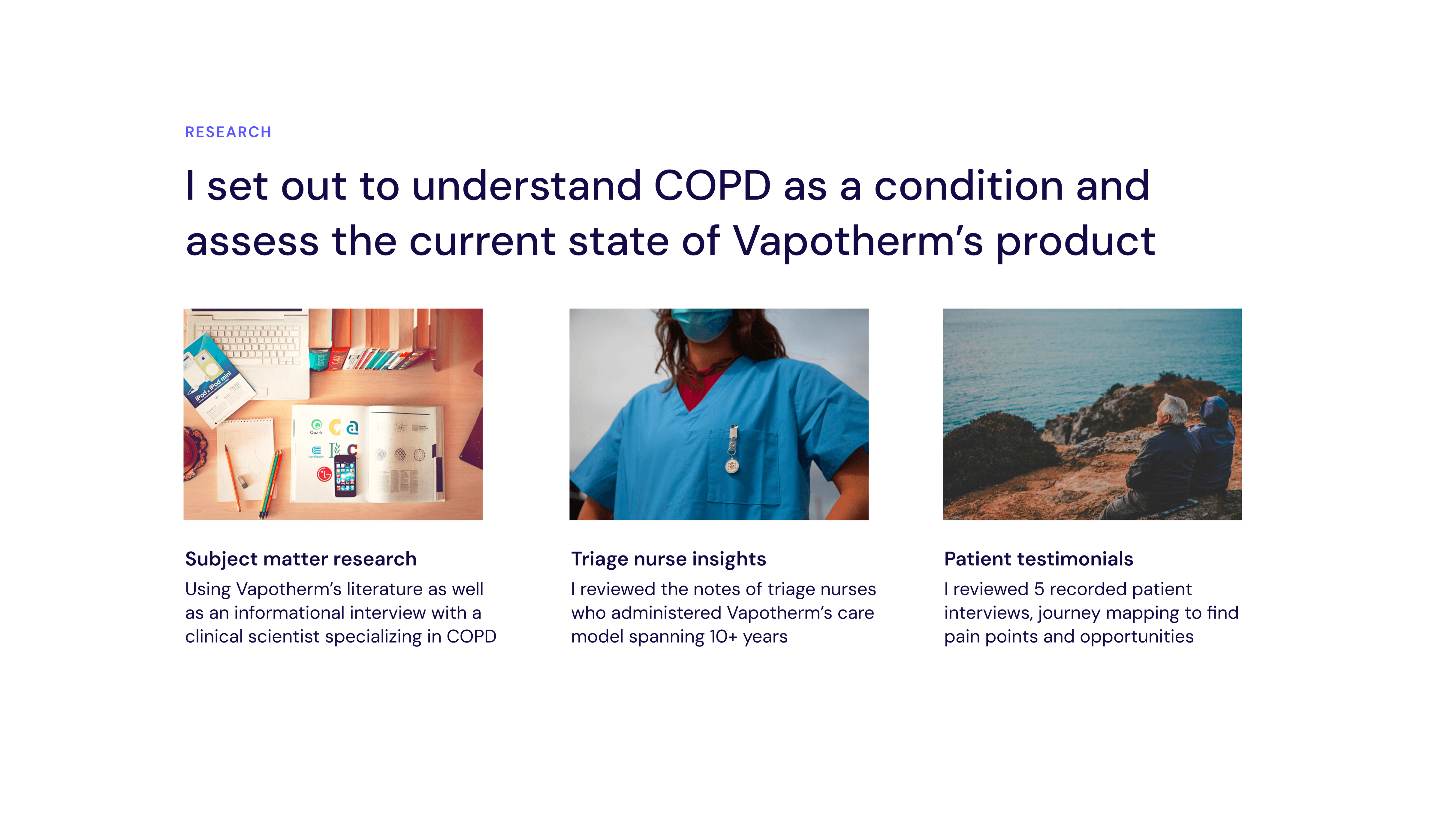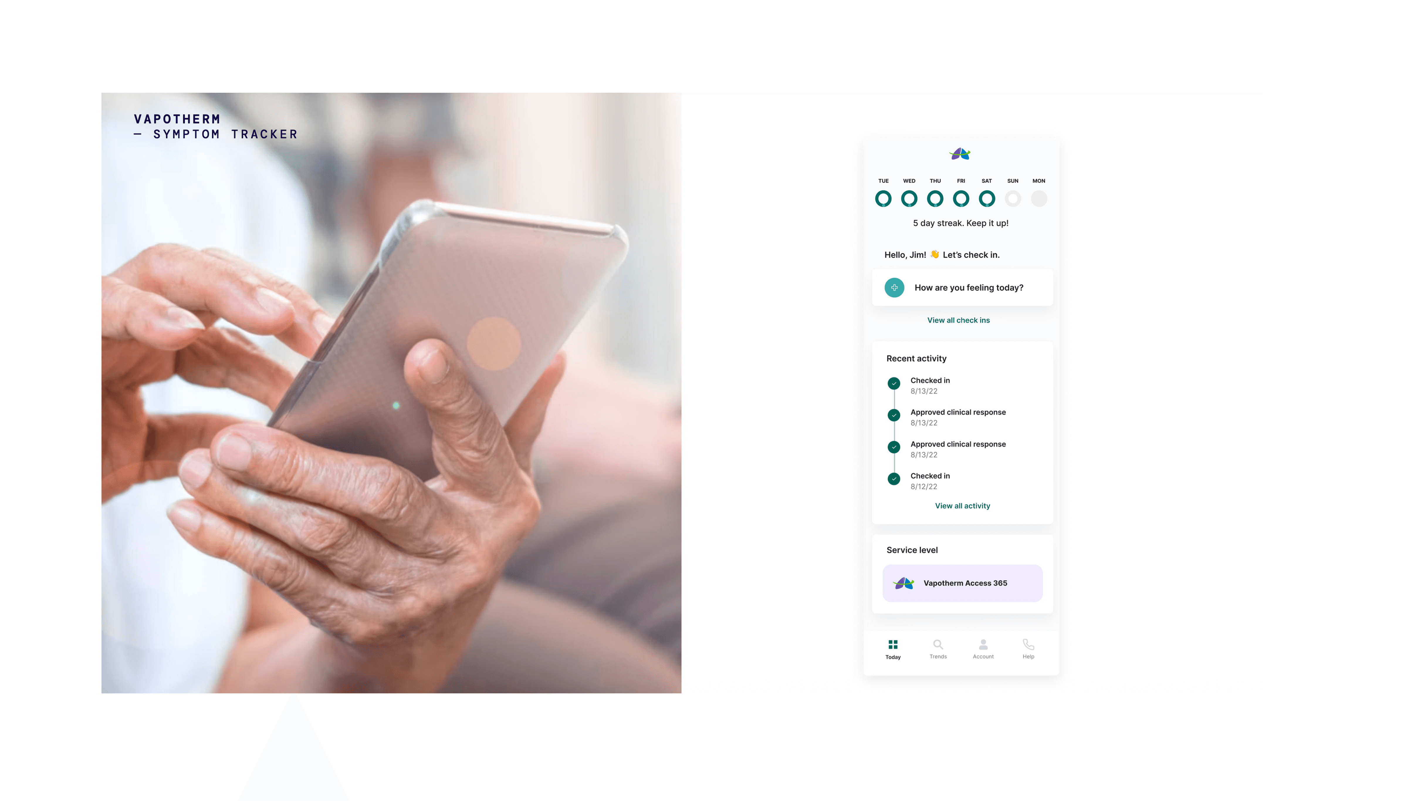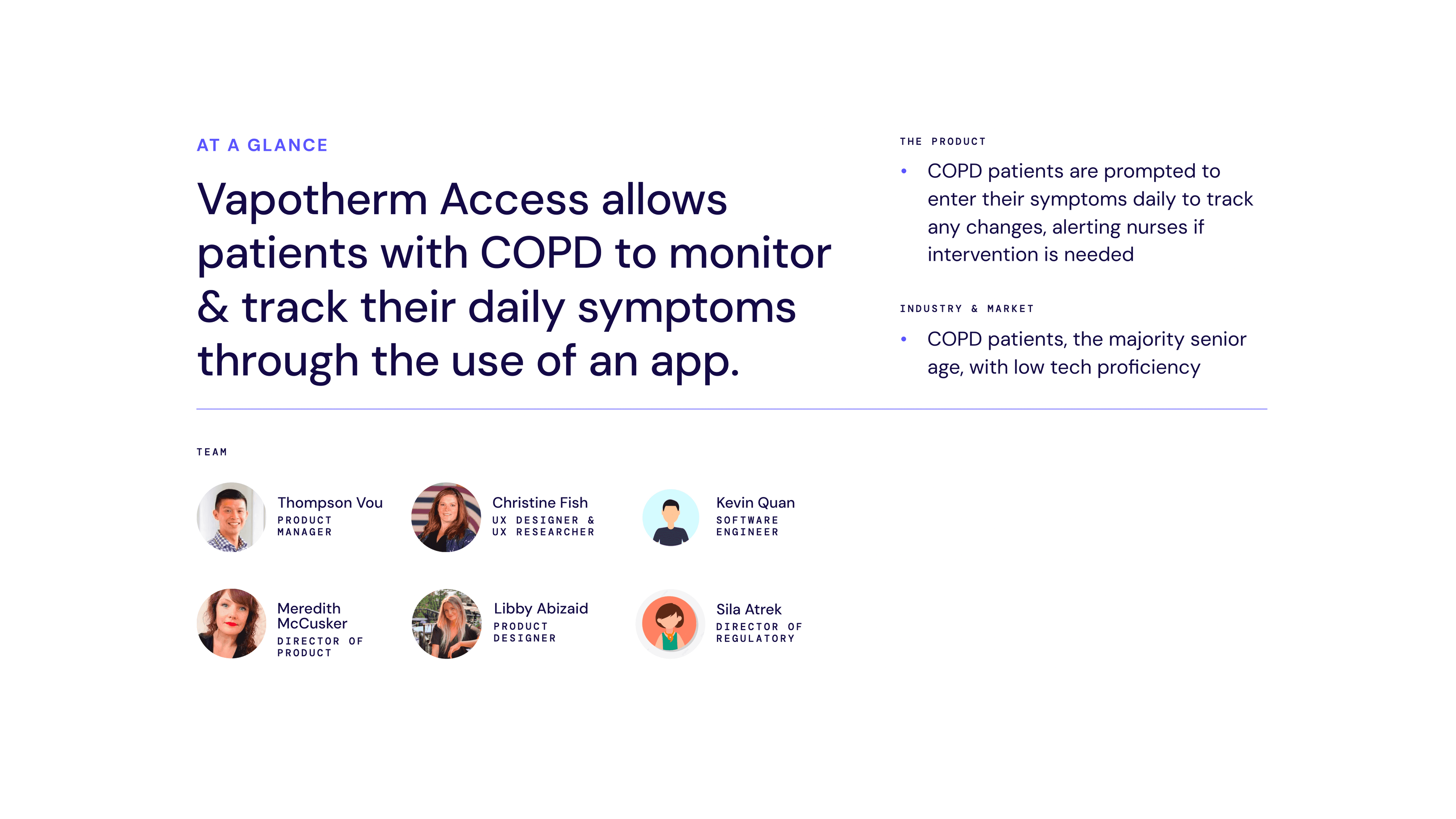 Vapotherm's COPD symptom tracking app used a clinically validated algorithm to anticipate dangerous flare-ups — but only worked if patients actually showed up every day. The product served a predominantly elderly population, many managing a serious chronic illness largely on their own.